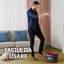 Dotato di un secchio a doppia camera, separa l'acqua pulita e sporca, garantendo un mocio fresco ad ogni risciacquo. Lavaggio e riutilizzo: la testa del mocio in microfibra può essere lavata in lavatrice, lavare fino a 30 gradi Celsius e riutilizzare il mocio più e più volte, per risultati di pulizia costanti, da sostituire con una nuova ricarica ogni 6 mesi, ricarica non compatibile con altri sistemi di mocio a rotazione La testa del mocio è lavabile in lavatrice: lavare fino a 30 °C e riutilizzarla più e più volte Il mocio in microfibra rimuove efficacemente lo sporco Pulizia igienica La testa del mocio in microfibra rimuove efficacemente oltre il 99% dei batteri con solo acqua*. RinseClean: La massima innovazione nella pulizia. Il sistema Vileda RinseClean Spin Mop & Bucket rivoluziona la pulizia con il suo design innovativo. Dotato di un secchio a doppia camera, separa l'acqua pulita e sporca, garantendo un mocio fresco ad ogni Il pedale azionato a pedale consente di strizzare le mani libere e garantisce un perfetto controllo dell'umidità. Pulizia in microfibra: la testina avanzata in microfibra fornisce una pulizia efficiente, rimuovendo sporco e sporcizia con il minimo sforzo e lasciando i pavimenti scintillanti puliti e senza striature, sicuro per l'uso su tutti i pavimenti duri, come legno, laminato, piastrelle, vinile e molto altro ancora Elevata capacità idrica Il serbatoio dell'acqua pulita può contenere fino a 6 litri di acqua pulita aiutandoti a pulire i pavimenti senza dover riempire frequentemente il serbatoio. Raggiungi gli angoli Manovra in angoli e punti difficili da raggiungere con la testa triangolare del mocio. Tutti i piani Ottenete un perfetto controllo dell'umidità con lo strizzatore a pedale – è sicuro pulire tutti i tipi di pavimenti duri: dal legno al parquet, piastrelle, vinile e altro ancora. Vantaggi Il secchio a doppia camera separa l'acqua pulita da quella sporca Acqua pulita continuamente Design ergonomico Progettato pensando al comfort, il mocio fornito con il sistema di secchio RinseClean ha un manico regolabile. 6 litri di acqua continuamente pulita: con tecnologia brevettata a doppia camera con serbatoi separati per acqua pulita e sporca, scopa con un flusso continuo di acqua pulita; il serbatoio dell'acqua pulita può contenere fino a 6 litri di acqua pulita! 30 °C insieme a tessuti simili. Manico telescopico ergonomico regolabile e struttura resistente Acqua sempre pulita L'innovativo secchio a doppia camera separa l'acqua pulita da quella sporca per una pulizia igienica. Strizzare a mani libere Pedale azionato a pedale per strizzare senza sforzo a mani libere: livello di umidità perfetto per tutti i tipi di pavimenti duri, anche superfici delicate. Istruzioni: versare l'acqua nel foro sul secchio blu e assicurarsi che il tappo sia completamente chiuso, tirare la leva rossa e consentire al serbatoio di riempirsi, l'acqua smetterà automaticamente di riempirsi quando raggiunge il giusto livello, assicurarsi che la leva rimanga sollevata in modo che possa riempirsi continuamente con acqua pulita, immergere la testa del mocio nel secchio blu per risciacquare con acqua pulita e quindi posizionare la testa del mocio nello strizzatore, tenere leggermente il manico e premere il pedale per strizzare il mocio fuori, più si preme più asciuga la testa del mocio diventa 123 cm per soddisfare perfettamente le vostre esigenze. Design ergonomico: tenendo presente il comfort, il nostro manico telescopico regolabile si estende da 55 a 123 cm, il che consente di pulire facilmente ed efficacemente, le dimensioni del secchio sono 49 x 30 x 26 cm e il serbatoio pulito contiene 6 litri di acqua Rinseclean Spin Vileda Vileda RinseClean Spin Mop System, Separa L'acqua Pulita E Sporca Strizzatura Senza Sforzo Set Di Mocio E Secchio In Microfibra Grigio 92944962 Vileda Turbo Smart