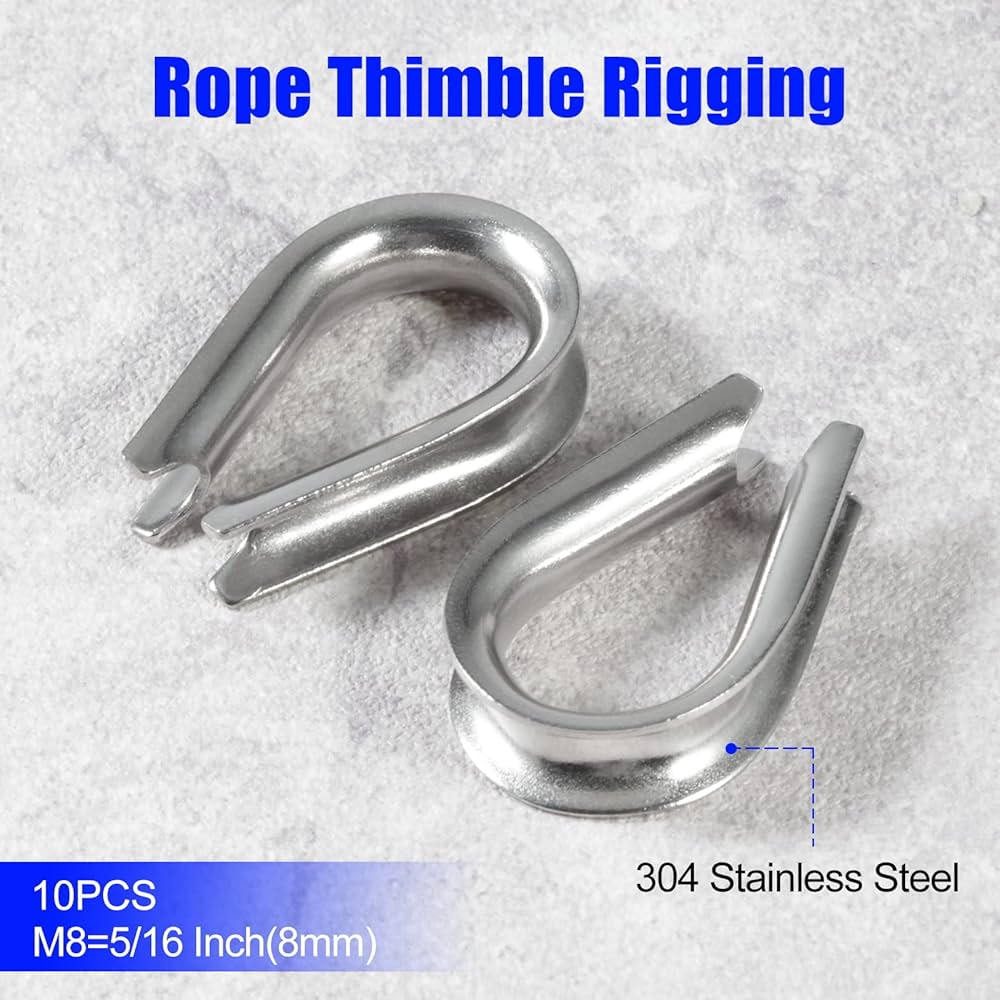 Anyasen 10 Pezzi M6 Fune Metallica Morsetto Clip Cavo Acciaio Inossidabile, Con 10 Pezzi Fune