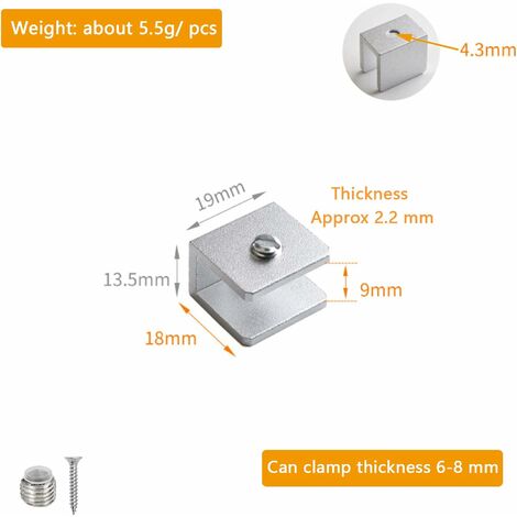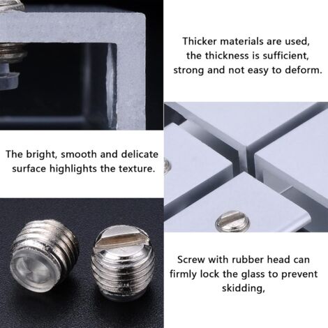 UFURMATE Staffa per mensole in vetro , 20 pezzi , regolabile , senza cornice, per mensole in vetro trapezoidale in lega di zinco, con perno per vetro da 3-8 mm, cromato lucido Facile e conveniente: le staffe per mensole in vetro con perno, non sono necess Universale 5-8 mm: Le nostre confezioni sono configurate con due versioni di Supporto Vetro Clip Per Specchi, una a vite singola e una a doppia vite, in grado di bloccare vetri di circa 5-8 mm di spessore. Facile installare: Le nostre Staffa Vetro in Lega Zinco possono essere fissate con colla senza chiodi o, se la colla non è adatta, è possibile fissarle praticando dei fori. Supporti Per Mensole In Vetro 12 Pezzi Morsetto In Vetro Nero Morsetto Fissa Vetro Regolabile Reggimensola Vetro Viti antiscivolo: Morsetto Vetro Regolabile sono dotate di viti antiscivolo per tenere più saldamente il vetro e hanno una maggiore capacità di carico per un uso più sicuro. Hanno una bella lucentezza metallica che non sbiadisce, sono robusti e non si danneggiano facilmente.