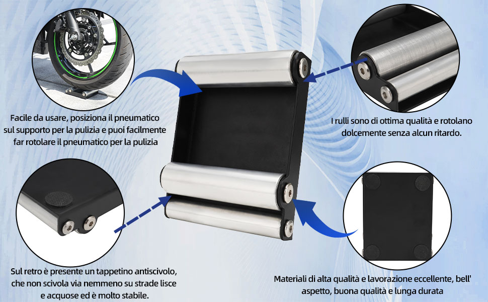 Le rampe integrate facilitano il posizionamento delle ruote sul rullo, rendendo la pulizia della catena o delle ruote un'operazione rapida e precisa. 【Design perfetto】Il design scorrevole permette alla ruota posteriore di ruotare in modo fluido e comodo. Cavalletti Da Lavoro Cavalletto Pulizia Catena Moto,Supporto Ruote Moto + Kit Di Spazzole Pulizia Moto 6 Pezzi Per La Maggior Parte Delle Bici Da Strada Pulitore Catena Moto 【Scopo principale】Il cavalletto moto è progettato per rendere la pulizia delle ruote o della catena della tua motocicletta semplice e veloce. 【Facile da usare】Posiziona semplicemente le ruote della tua moto sul cavalletto ruota posteriore moto e regola la staffa inferiore per fissare le ruote in posizione. 【Portatile facile da riporre】Compatto e leggero, questo cavalletto sposta moto occupa poco spazio e può essere facilmente riposto nel bagagliaio della tua moto. Le migliori offerte per Cavalletto Pulizia Catena Moto,Supporto Ruote Moto + Kit Di Spazzole Pulizia Mot sono su Confronta prezzi e caratteristiche di prodotti nuovi e usati Molti articoli con consegna gratis Che tu debba pulire la ruota posteriore o la catena, questo supporto è la soluzione ideale per una manutenzione completa. Che si tratti di una moto da città o da cross, questo supporto offre stabilità e sicurezza. Questo cavalletto pulizia catena moto è perfetto per chi cerca praticità ed efficienza.