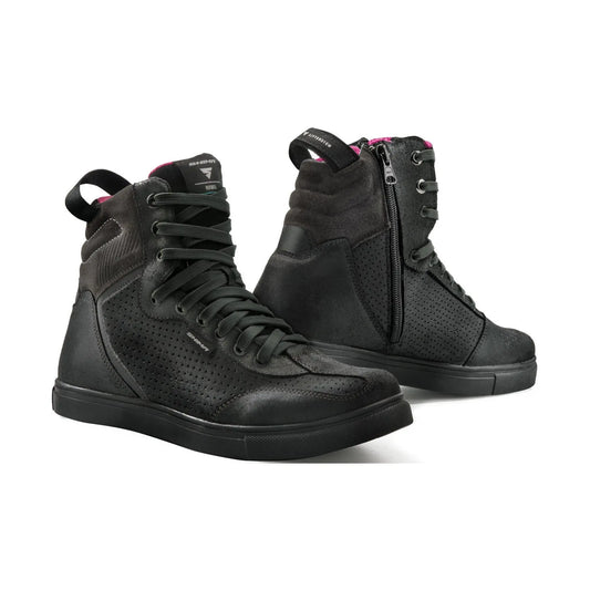 PROTEGGE IL TUO PIEDE - Tacco Rinforzato, Supporto alla caviglia con protezione in TPU e materiale PORONXRD che assorbe gli urti, e puntale rinforzato con cuscinetto del cambio protegge il piede ed estende la durata degli stivali da moto FACILE DA INDOSSAGGIO - l'affidabile cerniera laterale combinata con la cinghia a strappo sul retro permette di indossare e togliere la sneaker velocemente Stivali Shima Terra Waterproof Urban Donna Nero Gli stivali SHIMA Terra sono progettati per offrire protezione, durata, resistenza all'acqua e Leggeri ma protettivi, con tutte le funzioni di cui hai bisogno: tallone rinforzato, caviglia e dita dei piedi, suola ergonomica antiscivolo e membrana Nextdry, i piedi rimangono asciutti se ti sorprenderanno una pioggia improvvisa. Con 2 cerniere laterali e la cinghia, il piede scivola direttamente all'interno. PERFETTO PER IL MOTORCICLO E DI PIÙ - Progettato per Dare il Massimo Comfort e Protezione Sulla Moto, ma per Apparire e Sentirsi Bene Come le Normali Scarpe da Ginnastica; si Adatta Bene alla Maggior Parte dei Pantaloni da Moto e Alla Giacca da Moto SUOLA ANTI-SLIP - Suola in gomma resistente all'olio e antitraccia con gambo in acciaio integrato per una maggiore protezione e resistenza Gli stivali TERRA LADY sono la scelta perfetta per le scarpe da città e da touring che sono progettati per mantenere i piedi comodi mentre si sta in piedi e si ha stile. Le sue linee pulite, il profilo sottile e i dettagli riflettenti ti piaceranno immediatamente. Si adattano perfettamente e sono anche comodi da indossare. Scarpe Da Moto Buty Motocyklowe SHIMA TERRA LADY Damskie Turystyczne GRATISY Sun 68 Donna