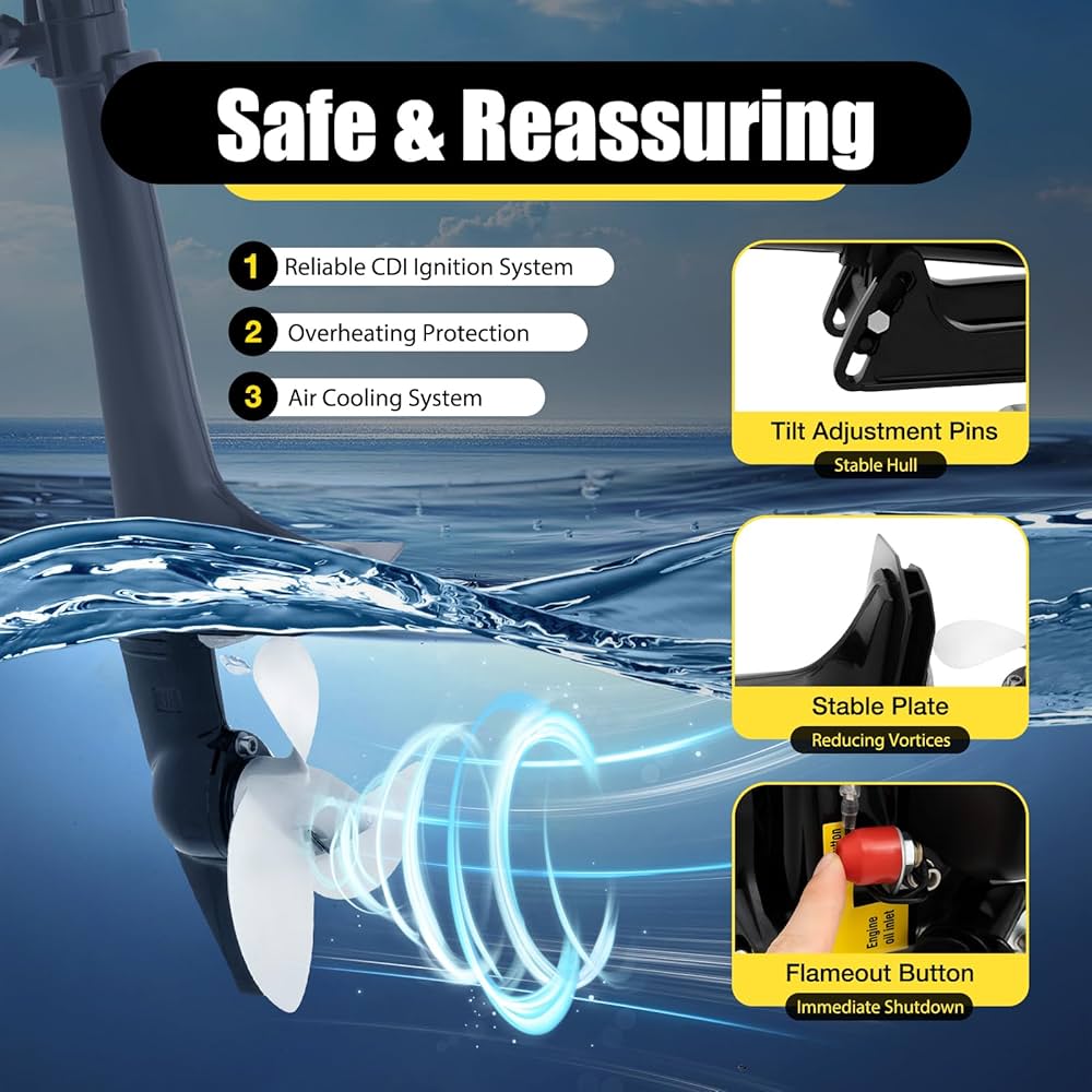 【Dissipazione rapida del calore】Gli ampi fori di dissipazione del calore sull'alloggiamento del motore consentono di dissipare rapidamente il calore e di evitare che il motore si bruci dopo un lungo periodo di utilizzo, prolungando così efficacemente la durata del motore. Ciò consente di risparmiare energia e denaro. Gommone Con Motore Motore Fuoribordo Honda BF 20 Da 20 CV LHSU (ELB: Elettrico, Lungo, A Tohatsu Fuoribordo 4 Hp Applicazione Questo prodotto è adatto a piccole imbarcazioni di diversi materiali (come gommoni, barche in ferro, barche in plastica, barche in vetroresina e barche in legno) ed è applicabile alle operazioni in acqua in fiumi, laghi, bacini artificiali, stagni per pesci, ecc. 【Basso consumo di carburante】Questo prodotto adotta un nuovo sistema di risparmio di carburante e ha un basso consumo energetico di 0,3 g/h. Basta tirare la corda e si è pronti a partire. 4HP 4 tempi, motore fuoribordo da 55 cc, motore per barche con funzione di guida a 360 gradi, set di attrezzi CDI per gommoni, barche in ferro È applicabile alle imbarcazioni con un carico di circa 440,92-1322 libbre e un'altezza della piastra di poppa di 17,32 pollici o meno. Può offrire un ambiente di lavoro più silenzioso. 【Facile da usare】Il semplice metodo di avviamento manuale e il dettagliato manuale in inglese all'interno della confezione del prodotto possono aiutarvi a operare con facilità e precisione.