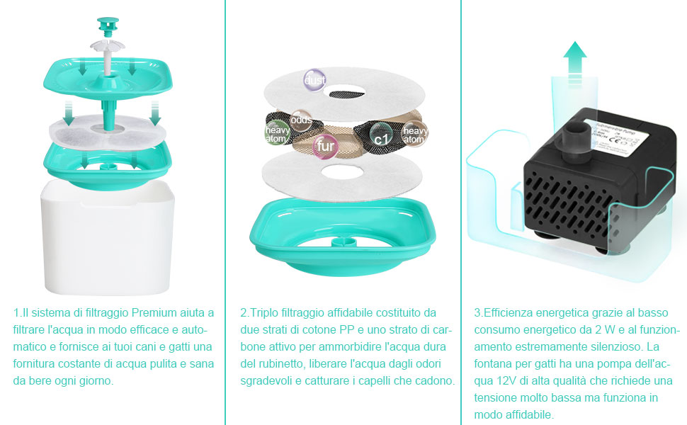 suo sistema di ricarica automatica del sifone mantiene l'acqua fresca mantenendo l'igiene. ↣Sicuro e durevole: il nostro distributore di acqua per cani è realizzato in materiale ABS di alta qualità, offrendo al tuo animale domestico un'esperienza di consumo sana e sicura. ↣Ricarica automatica igienica: assicurati che il tuo amico peloso abbia sempre acqua pulita da bere con nostro distributore di acqua per cani. Specifica:Nome prodotto: distributore di acqua per animali domesticiCapacità: 500 mlMateriale: ABSScatole da imballaggioElenco prodotti:distributore di acqua per animali domestici x1Appunti:1. A causa dei diversi monitor e degli effetti di luce, colore effettivo dell'articolo potrebbe essere leggermente diverso dal colore mostrato nelle immagini.2. Si prega di perdonare una leggera deviazione di misurazione dovuta alla misurazione manuale. Basta ruotare delicatamente e lavare con acqua, mantenendo tuo amico peloso rinfrescato e idratato con facilità. ↣Segni di scala: con i segni di scala autonomi sul distributore di acqua per cani, puoi facilmente tenere traccia dell'assunzione di acqua del tuo animale domestico e regolare di conseguenza suo piano di alimentazione. Questo distributore di acqua per gatti è dotato di ricarica a sifone per un comodo rifornimento d'acqua a prova di perdite. filtro multistrato rimuove le impurità per un'acqua potabile più sana. Ruotare delicatamente per bloccare e sbloccare il coperchio di sicurezza. Distributore Di Acqua Per Gatti MultiValue Dispenser Automatico Di Acqua Per Conigli 2 In 1 Dispenser Acqua Coniglio 500 Ml Borraccia Acqua Per Piccoli Animali Potabile Rimovibile Automatico Per Piccoli Animali (Blu Distributore Di Cibo Per Cani