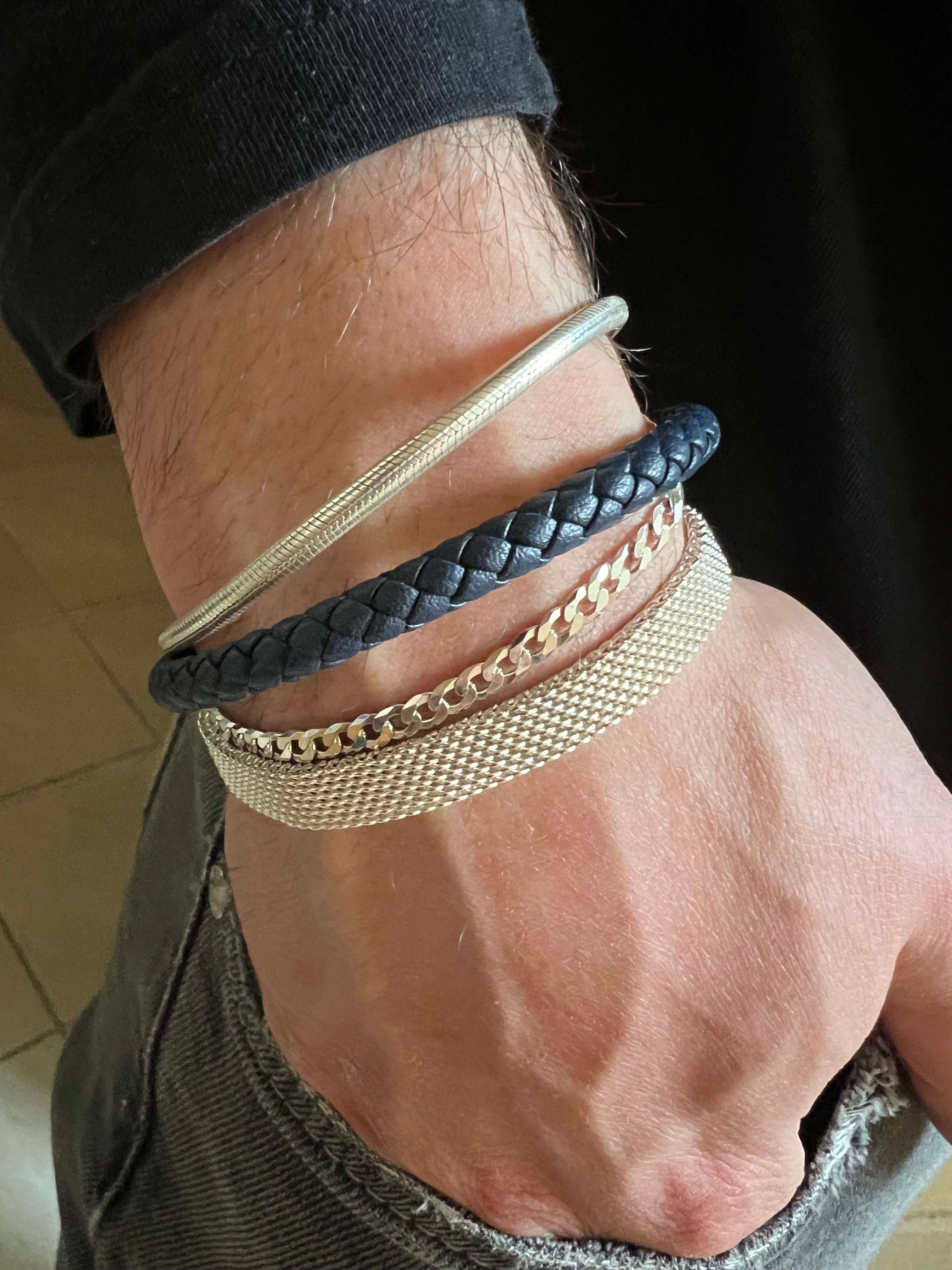 Bracciale In Pelle Intrecciata Multicorde Con Chiusura A Croce In