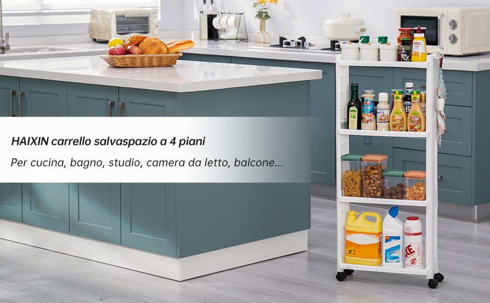 Carrello Cucina Carrello Stretto Multiuso 4 Cassetti Salvaspazio Con Ruote In Plastica Bianco – Acquista Su Giordano Shop Carrello Con Ruote Portatutto Cucina Zosenyer Carrello Con Ruote Portatutto, Carrello Cucina Salvaspazio, Carrello Bagno, 3 Piani, Plastica e Acciaio Inossidabile, Bianco FACILE DA SPOSTARE: Carrello da cucina in legno dotato di 4 ruote girevoli per la massima libertà di movimento, di cui 2 dotate di freni per mantenerlo stabile in posizione Massimizzare lo Spazio di Stoccaggio: Il nostro carrello cucina salvaspazio con 3 piani regolabili offre ampio spazio per strumenti da cucina, articoli per la sala da bagno, libri o materiali ufficio. Perfetto come carrello da cucina, carrello da bagno o carrello multifunzione per casa e ufficio Stabilità e Longevità: Ideale per cucina, bagno, ufficio o come carrelli da cucina con ruote portatutto Economia di Spazio e Multifunzionalità: Grazie al design compatto, questo carrello con ruote portatutto si adatta anche agli spazi ristretti. Facile Assemblaggio e Mobilità: Il nostro carrello è facile e rapido da assemblare seguendo le istruzioni fornite.