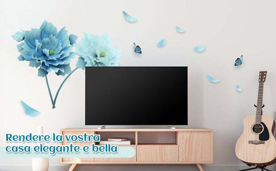 Tanlaby Grande Blu Fiori Adesivi Murali Azzurri Fiori Adesivi Da Parete (r2A