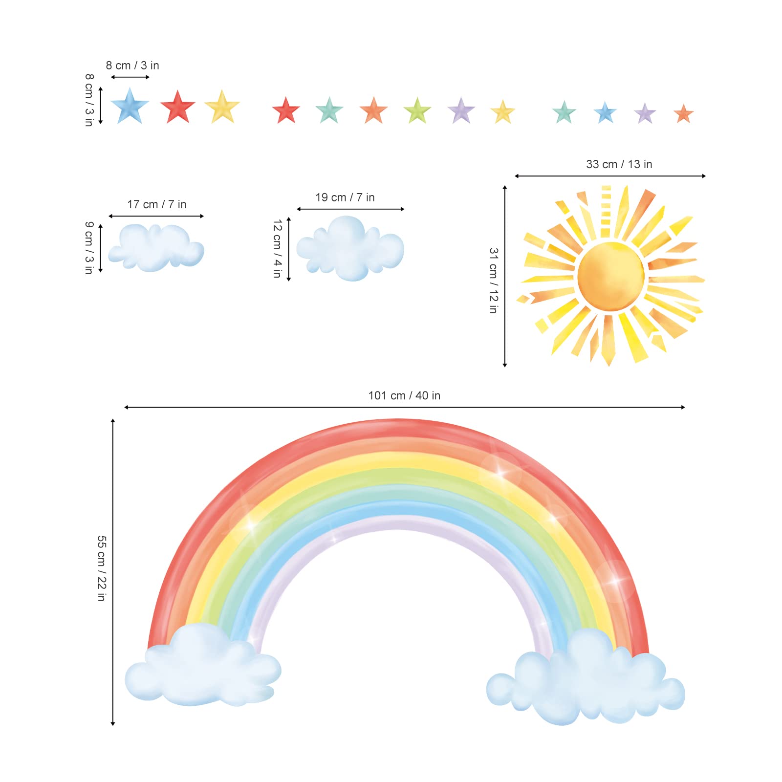 48pcs Adesivi Murali Rimovibili Nuvola Arcobaleno Per