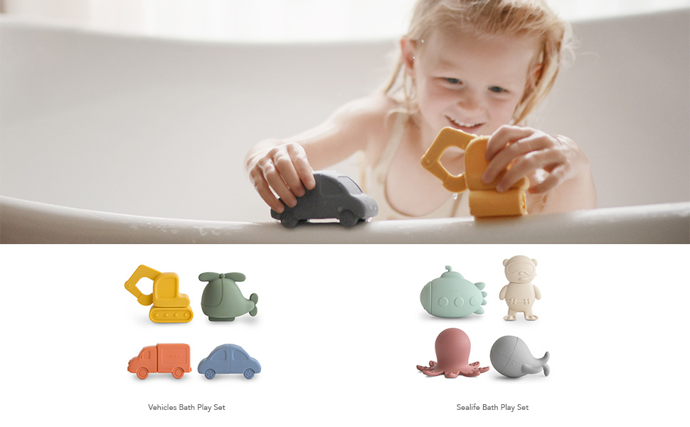 Mushie Giocattolo Da Bagno Con 4 Veicoli Galleggianti Per Neonati, Bambini Piccoli E Bambini | In Silicone Per Alimenti Per Il Divertimento Del Bagnetto | Subacqueo, Sottomarino, Polpo E Balena