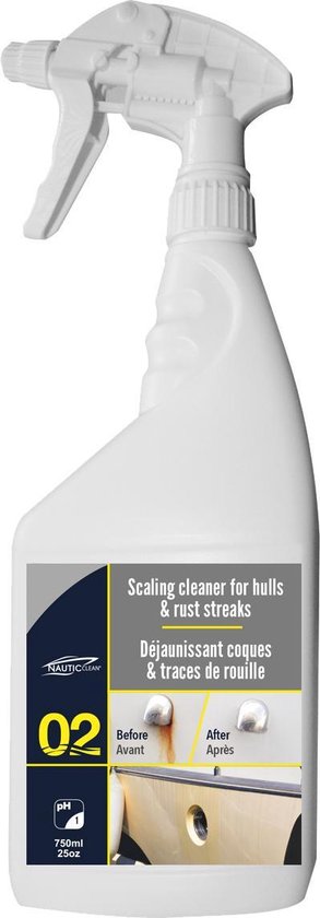 Restores whiteness and revives the gelcoat very quickly, removes the yellow veil and traces of corrosion, removes algae, shells, all residues of pollution,-non BIO-non BIO-5L NAUTIC CLEAN 02 SCALING CLEANER 0,75L GROWING UP TOGETHER