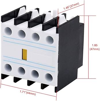 Ui: 690V; Ith: 10A Contatti 1NO 3NC Contenuto della confezione: 1 pezzo, peso: 63 g Questo articolo: Heschen Contattore AC blocchi di contatto ausiliari, F4-13 , 4 poli, 1NO 3NC contatti, montaggio anteriore, collegamento a vite, adatto CJX2 serie AC contattore 7,99€ 7 , 99 € Ricevilo il prima possibile il sabato 18 gennaio Contatori Ausiliari Elettrici CHINT Contatto Ausiliare Superiore NC1-F4 22 Chint 257019-per Contattore Serie NC1 Contattori Elettrici
