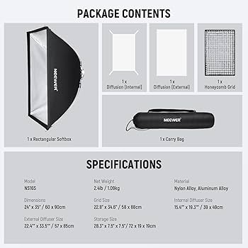 NEEWER Softbox Rettangolare 60x90cm, Softbox Studio Monolight Con Supporto Bowens, Diffusore E Borsa Per Il Trasporto, Compatibile Con S101-400W/300W, SL-70W, CB60/100/150 : Amazon.it: Elettronica