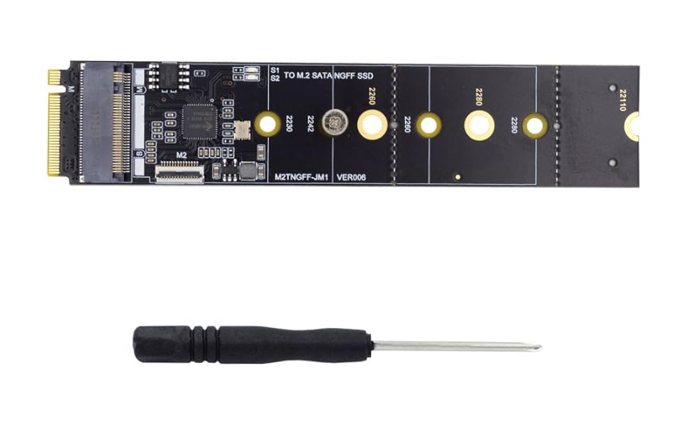 Ssd Nvme 1tb NGFF NVMe M-key SSD To M.2 Key A/E Adapter | Raspberry Pi PCIe Database Scheda Madre Intel Dimensione PCBA: 22* 110mm, Chipset di controllo principale: JMB582 Ha interfacce NGFF Key B+M, che possono essere collegate a un SSD, e supporta la porta M-key PCI-E NVME della scheda madre desktop. NVME four-disk design, Stable installation, Can run 4 NVME disks at full speed at the same time. Support 2U server small chassis installation, Built-in multiple sets of high-power DC modules for sustainable and stable work Supoort SATA NGFF Key B+M SSD con 2230/2242/2260/2280. Slot applicabile: NGFF Key B+M SSD a M-Key Host.