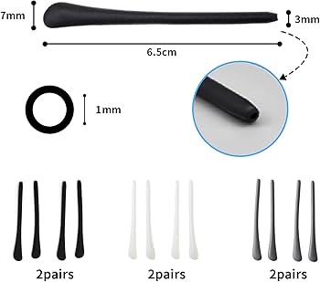 Acquista Zeayebsr 4 paia di cover in silicone Cover in silicone antiscivolo Morbidi occhiali antiscivolo pezzi di ricambio per riparazione aste universali per occhiali (bianco e nero) ✔ spedizione gratuita ✔ resi gratuiti su prodotti idonei 【Applicazione】 Adatta per maniche a filo rotondo con un diametro da 1 mm a 1,6 mm e cinghie metalliche sottili. 2 paia di neri e 2 coppie sa che non devono preoccuparsi che gli occhiali cadano. 【Dimensione】 Lunghezza totale: 65 mm, lunghezza del foro: 57 mm, diametro del foro: 1,4 mm. 【Funzione】 I tappi auricolari morbidi antiscivolo possono evitare che i tuoi occhiali scivoli durante il lavoro, l'apprendimento, le attività quotidiane e le attività all'aperto. Occhio Di Pernice NHQZ 10 Paia Di Cover In Silicone Per Aste Per Occhiali Cotone Idrofilo 【Suggerimenti】 Se si inserisce troppo stretto, posizionare il coperchio della punta finale in acqua calda per 20 secondi.