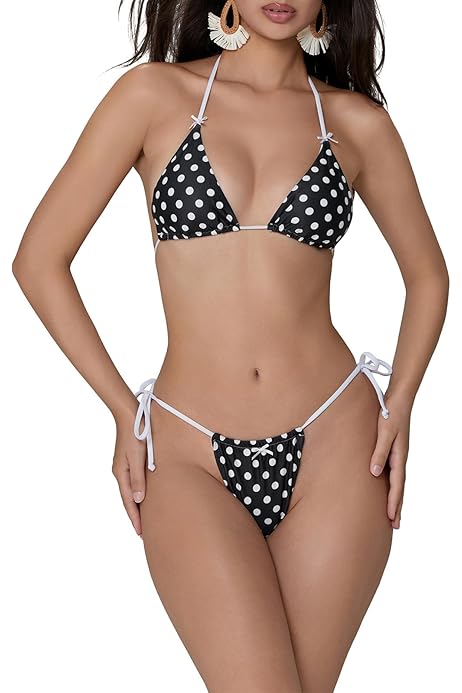 NLAND Bikini Sexy A Triangolo Da Donna Con Doppia Cinghia Costume Da Bagno In 2 Pezzi Con Cinghie Regolabili Costume Da Bagno In Stile Brasiliano(Blu,S) : Amazon.it: Moda