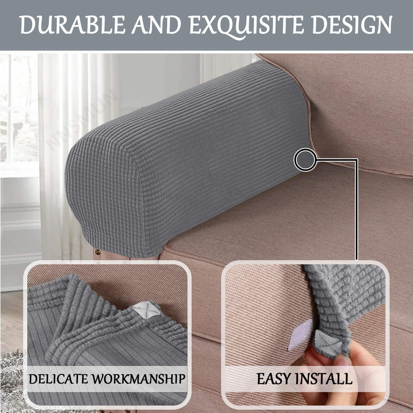 NNSMUN Set Di 2/4/6 Copri Braccioli Elasticizzati Per Poltrone, Universale Copri Bracciolo Divano, Antiscivolo Protezione Copridivano Per Mobili Per Sedie, Divano (Grigio Chiaro,6 PZ