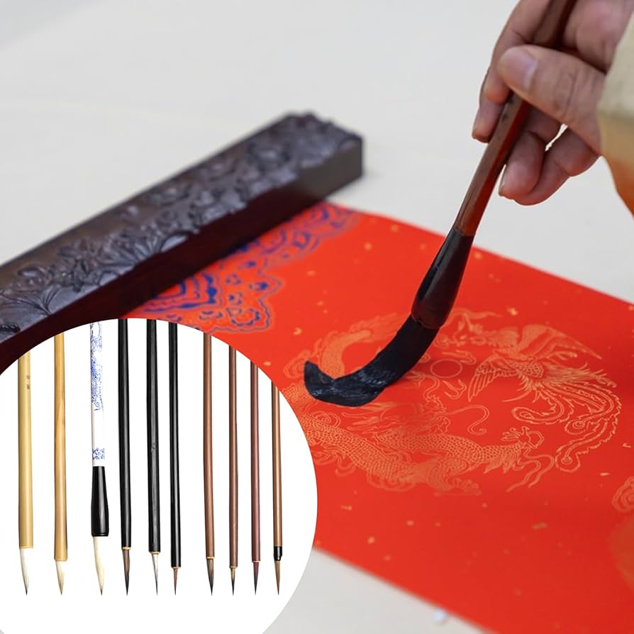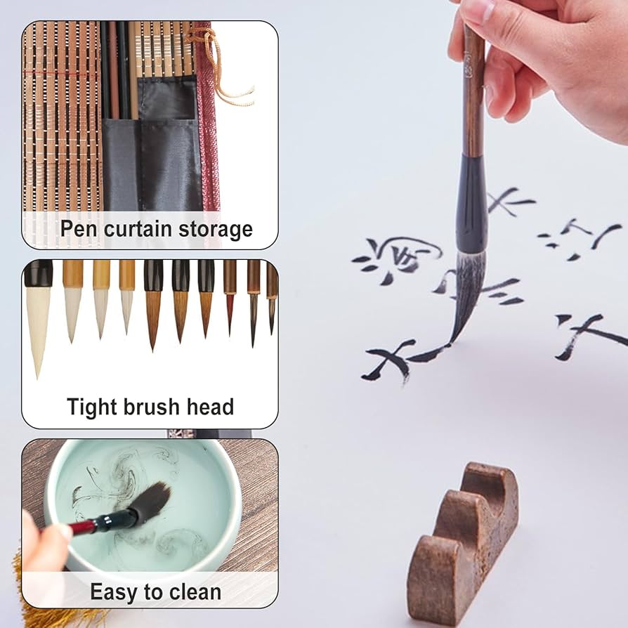 NUOLUX Set Di 3 Pennelli Per Calligrafia Cinese, Con Setole Di Lupo, Per Kanji Giapponese, Disegno A Inchiostro Cinese (3 Misure Con Portapenne E Pennello Medio Ombra