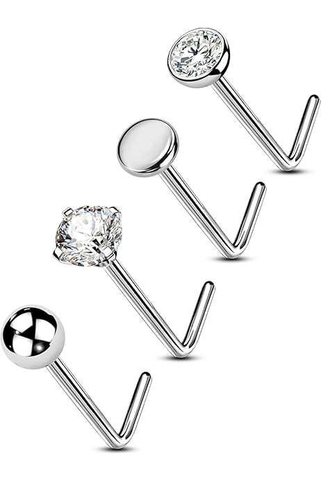 MILACOLATO 12Pz 20G Piercing Naso Acciaio Chirurgico Septum Piercing Trago Argento, CZ Brillantino Stella Naso Stud L Forma 8mm Fiore Aperto Anello Naso, Helix Daith Nostril Piercing Labbro Donna Uomo : Amazon.it: Moda