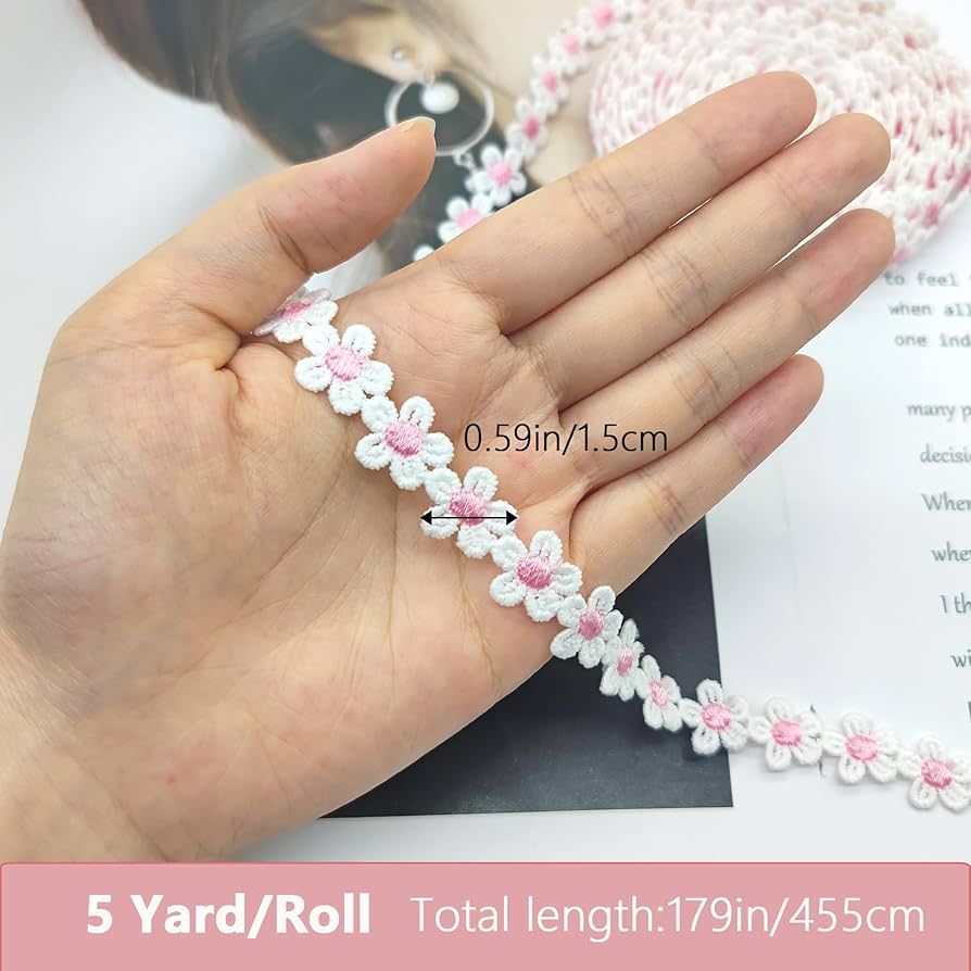 SSRDFU Pizzo Floreale Nastro Fiore Di Rosa - 5 Yarde Nastro