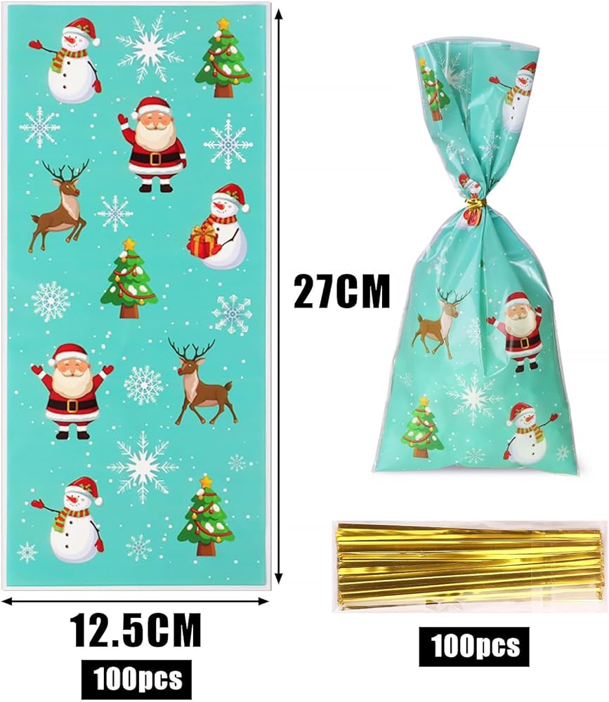 OWill 100PCS Sacchetti Di Caramelle Natale,Sacchetto Di Cellophane Trasparente Natale Con Lacci A 2 Colori,Sacchetti Per Dolcetti Di Natale Per Natale