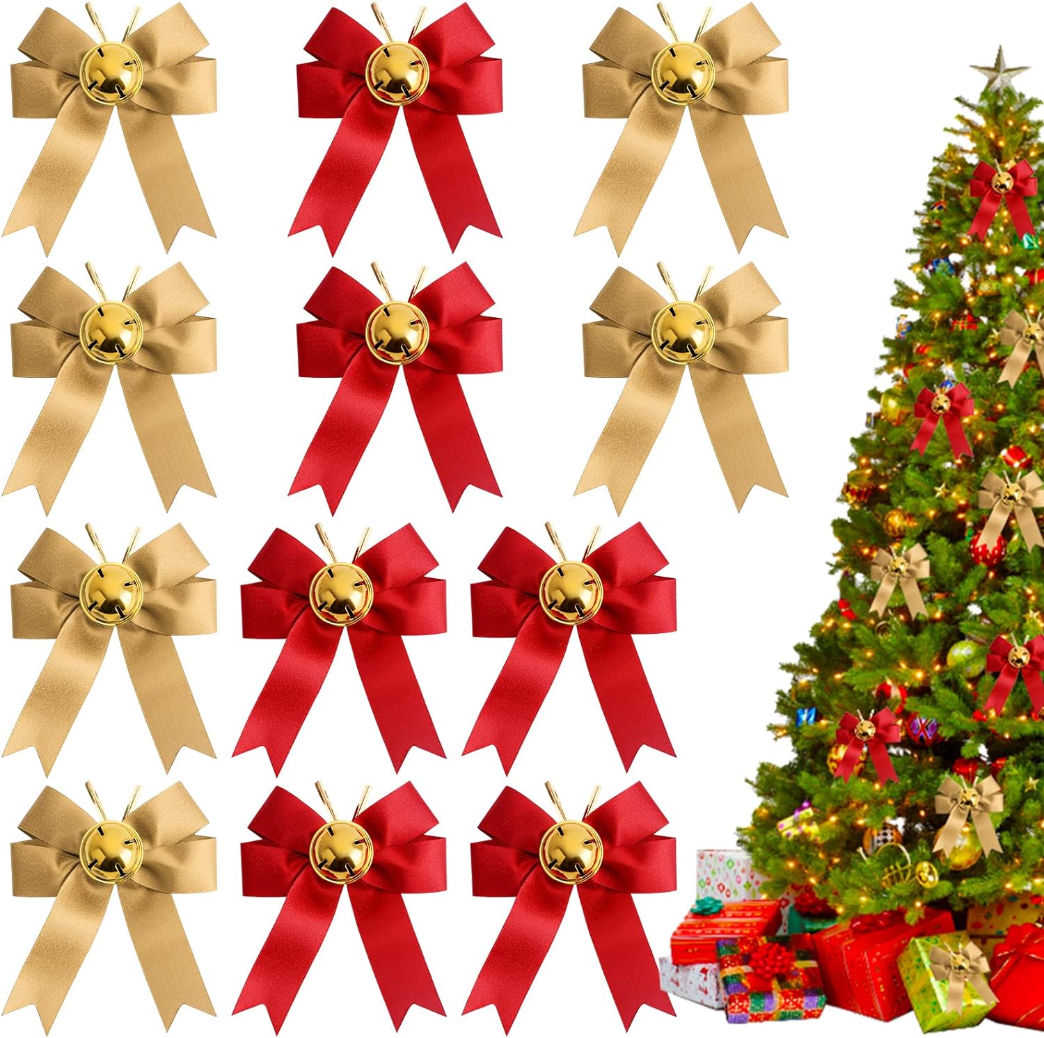 Zecouk Fiocchi Per Albero Di Natale, Fiocco Natalizi 12 Pezzi Fiocco Natalizio Con Campanello Per Albero Di Natale Ghirlanda Regalo Decorazione