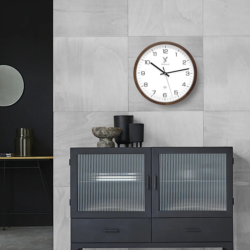 Holzwerk Germany Orologio Da Parete Radiocontrollato In Legno Naturale, Orologio Da Parete Radio, Stile Vintage, Senza Ticchettio, Marrone, Bianco, Silenzioso, Realizzato A Mano, Legno Massello