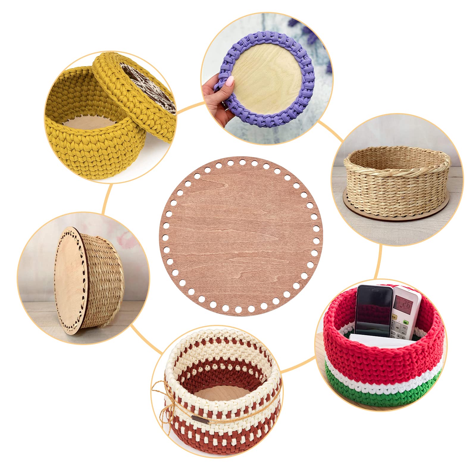 Csirnto 5 Pezzi Fondo Cesto In Legno Naturale Uncinetto Cestino Base In Legno Fondo Per Borsa Uncinetto Base In Legno Per Cesto Fai Da Te Con 1 Pezzo Di Uncinetto 10/15/20/25/30cm