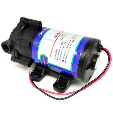 Portata: 0,6 LPM Pressione di esercizio: 5 bar Pressione di ingresso massima: 2 bar Sollevamento: 1 metro Dimensioni: 184,5 × 99,5 × 102 mm Certificazioni: ISO9001, RoHS e CE, garantendo qualità e sicurezza Facile installazione e compatibilità La pompa è dotata di filettatura femmina 3/4, garantendo compatibilità con la maggior parte dei sistemi ad osmosi inversa sul mercato. Ciò eviterà danni prematuri alla testa della pompa e ne garantirà la durata. Pompa booster per impianti osmosi inversa equipaggiati con membrane da 50 e 75 GPD . Completa di trasformatore a 24 V e raccordi per il collegamento con i tubi dell'osmosi per il corretto funzionamento. La Booster deve essere montata tra i filtri a sedime Caratteristiche tecniche chiave Tensione: 24 V. Corrente massima: 1,2 A. Consumo: 0,6 A. Con questa pompa booster da 24 V, la tua attrezzatura per osmosi funzionerà in modo ottimale, garantendo una portata stabile di 0,6 LPM e una pressione di esercizio di 5 bar, migliorando notevolmente la produzione di acqua purificata. Attacco filettato femmina da 3/4. Se ne hai bisogno, puoi acquistarlo p Pompa Booster universale per osmosi inversa 50 GPD 24 V La pompa Booster universale 50 GPD è un componente essenziale per garantire il corretto funzionamento delle apparecchiature ad osmosi inversa, soprattutto se la pressione dell'acqua in ingresso è inferiore a 3,5 bar. Migliora le prestazioni del tuo sistema di osmosi Se la pressione dell'acqua nella tua casa o installazione è insufficiente, la membrana di osmosi non sarà in grado di filtrare correttamente, riducendo il flusso di acqua purificata e compromettendo la sua qualità. Progettata per migliorare l'efficienza del sistema, questa pompa aiuta a ottimizzare le prestazioni della membrana, garantendo una filtrazione più efficace e prolungandone la durata. Pompa Booster 50 Gpd Minsan Naturewater 51785 | Pompa Booster 400 GPD 96W RO Pompa Aqpet 50 Gpd
