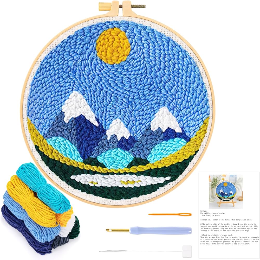 JSRQT Punch Needle Starter Kit,Kit di Ricamo per Aghi da Punzonatura,Kit per Principianti per Ricami,Kit di Ricamo per Aghi da Punzonatura per Adulti Principianti(Onda Marina Regalo perfetto: Dopo aver completato i Kit per Principianti per Punch Needle, può essere utilizzato come decorazione per armadi, pareti, scrivanie e il kit per ricamo fatto a mano è anche un regalo perfetto per la famiglia e gli amici, come compleanni, anniversari, Ringraziamento, Festa della mamma , festa del papà, ecc Adatto ai principianti: Kit ricamo fai-da-te ha semplici istruzioni in inglese, che introducono il metodo di infilatura dell'ago da punzonatura e le abilità di ricamo, aiutando i principianti con l'ago da punzonatura a completare meglio i lavori di ricamo Principianti JSRQT Punch Needle Starter Kit,Kit Di Ricao Per Aghi Da Punzonatura Kit Ricamo È anche un artigianato per decorare il soggiorno e la camera da letto Kit da Ricamo con Ago Punch per Paesaggi Il kit telaio Punch Needle utilizza materiale di cotone di alta qualità, morbido, confortevole e altamente traspirante Il telaio da ricamo è dotato di viti di regolazione, è robusto e piatto e può essere utilizzato come cornice per foto mentre si assiste nel ricamoAvvisoIl motivo girasoli prestampato non può entrare in contatto con l'acqua prima dell'uso, altrimenti il motivo scomparirà Una volta completato il ricamo, immergilo in acqua per rimuovere il motivo stampato, il che è semplice e convenientePacchetto include: 1 * Tessuto prestampato 1 * Istruzioni dettagliate in inglese 1 * Telaio da ricamo in plastica da 8 pollici 1 * Ago da punzone 1 * Infila ago 2 * Aghi Basta discussioniSpecifiche: Dimensioni del prodotto: 20 x 20 cm Materiale: Cotone Peso: 4 Once Motivo: Paesaggio