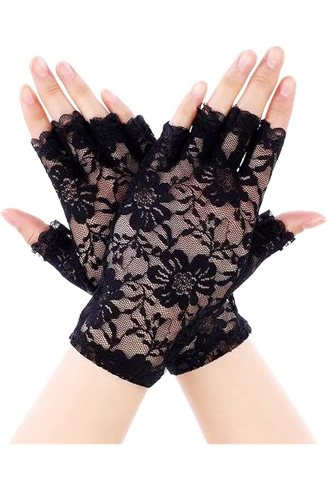 MEMOFYND 2 paia di guanti neri in pizzo a mezza dita, guanti di Halloween, guanti sexy traspiranti, adatti per feste di nozze all'aperto, Nero , Taglia unica Multiuso: sia che siate chic per un'occasione formale o per un'occasione casual, è possibile utilizzare questi guanti di pizzo che possono essere facilmente abbinati a diversi abiti per matrimoni, serate, opere, spettacoli teatrali e tutte le occasioni formali. Design elegante: questi guanti in pizzo sono caratterizzati da un design delicato e sottile con un motivo unico e donano al tuo outfit un tocco di raffinatezza ed eleganza. Guanti Pizzo Guanti Neri In Pizzo - Negozio Di Carnevale - Costumi Di Carnevale E Accessori Per Adulti E Bambini Guanti In Pizzo Neri Vestibilità confortevole: questi guanti in pizzo sono realizzati in materiale elastico e traspirante e si adattano comodamente a qualsiasi dimensione della mano. Informazioni sulla confezione: riceverete 2 paia di guanti in pizzo nero, il tessuto elasticizzato è perfetto per ragazze e donne.