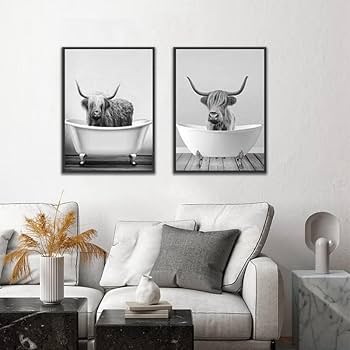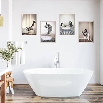 DLKAJFK Quadro Da Bagno Con Animali Nella Vasca Da Bagno, Immagini In Bianco E Nero, Per Bagno, Poster Per La Casa, Senza Cornice (20 X 30 Cm X 2
