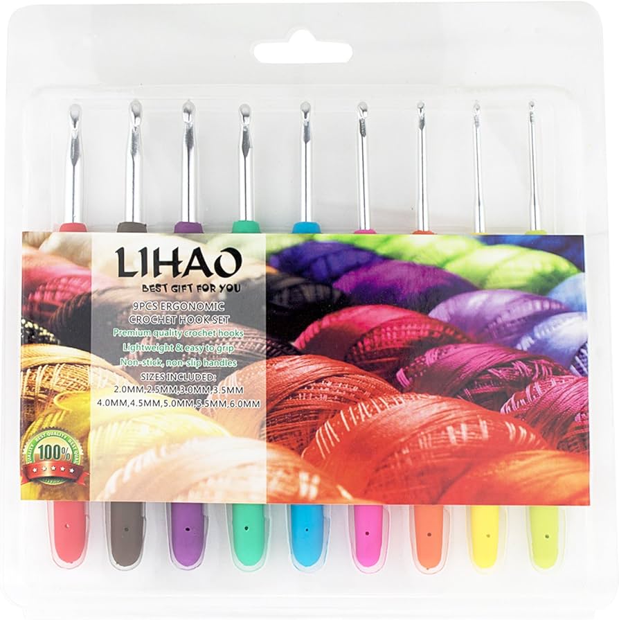 In questo modo l'uncinetto diventa un piacere regolare. Specifiche: Materiale: silicone e metallo. Gli uncinetti colorati (da 2 mm a 6 mm) hanno marcature delle dimensioni ben visibili sui manici per una facile selezione. Con la loro superficie liscia e lucida, gli aghi scivolano facilmente attraverso il filo, ideale per principianti e professionisti. Gancio liscio: gli uncinetti hanno una superficie perfettamente lucidata che scorre facilmente attraverso il filo senza aggrovigliarsi o danneggiarlo. Regalo perfetto per gli amanti del lavoro a mano: il set contiene 20 pennarelli aggiuntivi ed è ideale per progetti creativi e amanti del lavoro manuale. Set colorato: il set contiene uncinetti da 2 mm a 6 mm, ognuno in un colore unico. Le dimensioni sono saldamente incise sulle maniglie in modo che rimangano sempre visibili e si può facilmente scegliere l'ago giusto. 【Comodo uncinetto】 I nostri uncinetti da 9 pezzi offrono manici ergonomici in gomma morbida che alleviano il dolore al polso e alle dita. Uncinetto Set Set Di Uncinetti Neri Da 2 Mm A 6 Mm, Impugnatura Ergonomica Per Uncinetto Ergonomico Per Bambini Ideale per ore all'uncinetto, anche in caso di artrite o altri disturbi. Dimensioni: 2,0 mm, 2,5 mm, 3,0 mm, 3,5 mm, 4,0 mm, 4,5 mm, 5,0 mm, 5,5 mm, 6,0 mm. Colore: casuale.