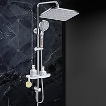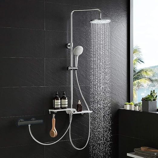 Görbach Colonna Doccia Nero In Acciaio Inox Senza Miscelatore Fori Muro Regolabili Asta Doccia Set Doccia A Pioggia Con Doccetta E Soffione Doccia E Porta Ogetti Mensola Quadrato 20 * 20 Cm