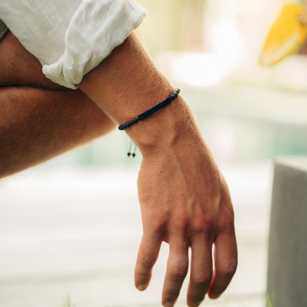 LUOKIFUR Braccialetto Nero In Tormalina Da Uomo, Regalo Per