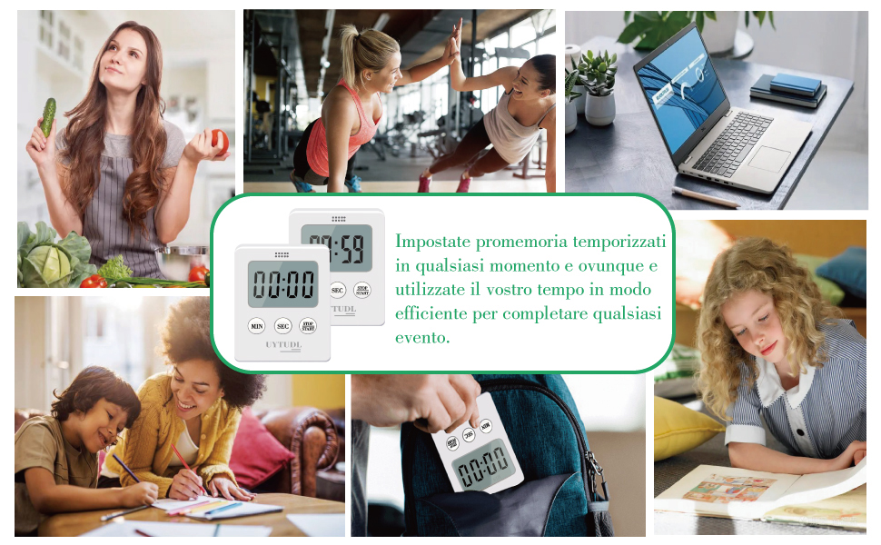 Premere un tasto qualsiasi per fermare il campanello. Tempo di Memoria: Continuerà a tenere il tempo come il tempo a riposo in quel momento. Unità di tempo: minuti e secondi Intervallo di tempo: da 0 secondi a 99 minuti Perfetto per cucinare (timer per le uova), compiti a casa o come cronometro per gli sport di esercitazione e gli allenamenti. Descrizione prodotto Timer con funzione orologio digitale Per gli studenti, il timer digitale è un buon partner per la pratica dei compiti. Timer Da Cucina Rumoroso Utensili Da Cucina Nero Yuccer Timer Da Cucina Magnetic Mechanical Rotate Timer Visual Timer Cronometro Sportivo Timer da cucina magnetico Magnete potente nella parte posteriore del timer, in modo da poterlo utilizzare su una superficie magnetica, come frigorifero, forno e cappa da cucina. Bellissimo aspetto, leggero e portatile Il timer da cucina è carino e piccolo, facile da riporre e trasportare, adatto a diverse occasioni e tempi precisi, ad esempio, è coerente con il tempo di completamento della lavatrice e dell'asciugatrice, che è facile da riporre. Per gli impiegati, l'orologio con timer è la piccola sveglia perfetta per ricordarti l'ora di andare al lavoro e l'ora di incontrarsi. Perfetto per cucinare (timer per le uova), compiti a casa o come cronometro per gli sport di esercitazione e gli allenamenti. [ Ampio Utilizzo] il portatile dell'interno ed all'aperto timer cronometro multifunzione è adatto per molte occasioni. Può tempo Può anche essere applicato per imparare sport, riposo all'ora di pranzo e tempi. Facile da riporre e trasportare per il suo design semplice e leggero. Impostare le pause pranzo per rendere il lavoro perfetto Il timer da cucina digitale è un buon timer per attività quotidiane a tempo limitato, in particolare per problemi di cucina. Per gli sportivi che possono raggiungere la quantità ottimale di esercizio in un tempo scientifico. 【Batteria integrata】Il timer digitale che conta prodotto è alimentato da batterie a bottone sostituibili e il consumo della batteria può essere ignorato quando il prodotto è in modalità standby quando non è in funzione. 【Facile e Chiaro da Leggere】Mini sveglia timer magnetico forma miniaturizzata e compatta con display trasparente, dimensioni dello schermo digitale LCD di 1.45 inch x 1.18 inch. Si può anche scegliere di premere zan'ti prima che il suono si interrompa. 【Facile da Gestire】Timer digitale da incasso con funzione di conto alla rovescia utilizzabile come, con conto alla rovescia da 99 minuti e 55 secondi a zero. Pianifica il tuo tempo di studio e migliora l'efficienza dello studio. È un buon aiuto per farti diventare l'ospite della tua stessa vita.