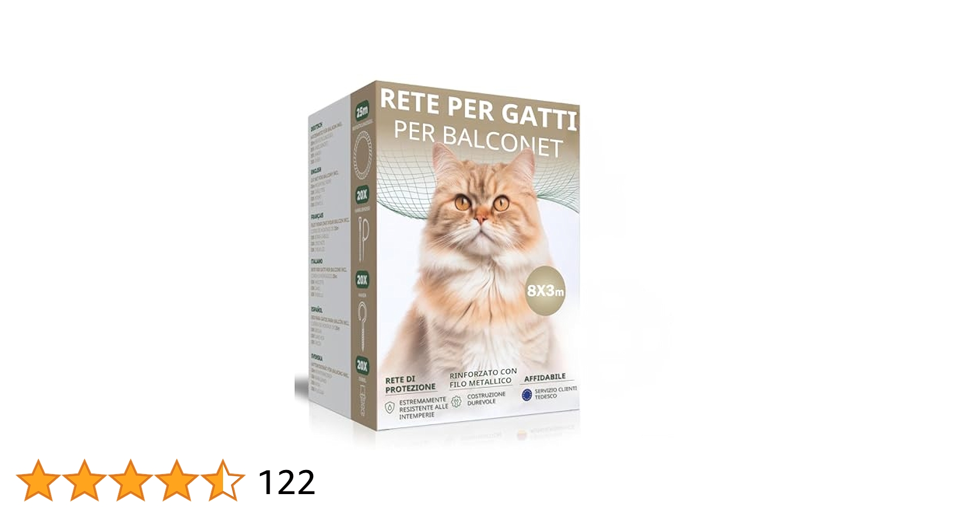 Descrizione prodotto Rete per gatti 12+1 per balcone, 3 x 8 m, verde oliva Proteggete il vostro gatto in modo affidabile con la nostra innovativa rete per gatti 12+1 di dimensioni 3 × 8 m e il colore verde oliva. Colore: verde oliva: si adatta discretamente a qualsiasi ambiente del balcone. Dettagli del prodotto: Dimensioni: 3 × 8 metri. Con un accesso sicuro al balcone, il tuo gatto può godere di aria fresca e luce solare, migliorando la sua salute fisica e mentale. Larghezza delle maglie: 3 × 3 cm – fornisce protezione senza limitare la visibilità. Facile da usare: le nostre griglie di protezione per gatti e reti offrono spazio aggiuntivo per il vostro gatto e sono perfette per piccoli appartamenti. Questa rete è stata sviluppata appositamente per i proprietari di gatti che non vogliono scendere a compromessi in termini di sicurezza. Con le nostre reti per gatti ridurrete il rischio di incidenti e lesioni del vostro gatto e risparmierete a lungo termine i costi del veterinario. Grazie alla sua particolare struttura, composta da 12 fili di nylon resistenti e 1 filo in acciaio inox extra forte, offre una protezione ottimale contro i morsi di gatto e graffi. Facile da usare: con reti per gatti di alta qualità e protezione per il balcone, potete essere sicuri che il vostro gatto sia protetto. La nostra qualità è stata premiata da Warentest Online con il punteggio superiore 1,2. Se non sei soddisfatto delle nostre reti per gatti, puoi facilmente restituirle per un rimborso completo. Questi offrono un fissaggio più affidabile rispetto ai ganci in silicone, soprattutto per i gatti attivi che amano arrampicarsi e giocare! Perfetto per il balcone per la protezione da gatti o la finestra di protezione da gatti. Tu e il tuo gatto potete ancora goderti la vista sul balcone al massimo. [Easy Installation]: la rete CAT viene utilizzata con istruzioni operative, corde di installa Inoltre, la rete impedisce al tuo gatto di fuggire e lo protegge dai pericoli del mondo esterno come traffico, piante velenose o altri animali. Materiale: 12 fili di nylon al 100% + 1 filo in acciaio inox, estremamente resistente agli strappi e ai morsi. Rete Balcone NieKilig Rete Per Gatti Balcone Rinforzata, 4x3 Rete Gatto Balcone, Rete Protezioni Gatti Per Balconi, Finestre, Terrazzo, Lucernari E Porte : Amazon.it: Prodotti Per Animali Domestici Rete Protezione Gatti Balcone Suggerimento per gli esperti: Per la stabilità e la sicurezza ottimali della rete per gatti si consiglia di utilizzare ganci che vengono forati nella parete. La robusta rete di sicurezza impedisce al tuo gatto di cadere dal balcone o dalla finestra e lo protegge da incidenti potenzialmente mortali. Facile da usare: le nostre reti per gatti e reti per gatti vi daranno la certezza che il vostro gatto è al sicuro senza doverlo monitorare costantemente. Ideale per balconi di diverse dimensioni.
