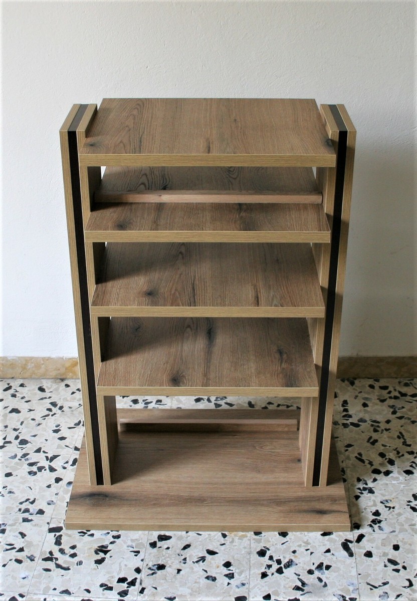 NorStone ESSE HI-FI 4-shelf Hi-Fi component cabinet with white structure and MDF oak shelves to store your electronics Mobile Stereo Hi Fi Norstone Esse HiFi è L'iconico Mobile HiFi Bello E Conveniente | HIFIGHT Norstone 4 Ripiani Norstone Esse Hi-Fi Bianco e Rovere - Mobile Hifi