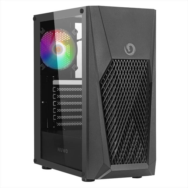 Il Case con frontale ABS e strip led e pannello laterale in vetro temperato. CONNETTIVITÀ COMPLETA: Le porte USB 3.0, USB 2.0, microfono, audio HD, accensione e reset sul pannello superiore ti permettono di collegare le tue periferiche con piena comodità. Pre-installate 3 ventole rainbow fisso attacco molex (1 da 120 mm sul retro e due da 140 mm sul frontale). Nuwo Blitz R24 Black Micro-ATX Case for PC Desktop Office Gaming Mini Tower 0.50MM SPCC with 3 Fixed Rainbow Lighting Fans Tempered Glass Side Panel (HxDxL: 388x350x203mm DESIGN PROFESSIONALE: La serie Blitz della Nuwo permette di installare schede madri in formato micro-ATX e mini-ITX. Nuwo Blitz R24 Case Micro-ATX ideale per chi desidera esprimere la propria personalità e il proprio stile in modo sofisticato. Nuwo Blitz R24 Nuwo Blitz R26 Nero Case Micro-ATX Per PC Desktop Office Gaming Mini Case Pc Gaming Presenti filtri anti-polvere sul pannello superiore e inferiore Computer Case con struttura SPCC di 0.50mm ad alte prestazioni con frontale Mesh e pannello laterale in vetro temperato che si adatta sia in casa che in ufficio che per gamers Sui pannelli superiore ed inferiore del case sono presenti filtri anti-polvere, quello superiore magnetico. CARATTERISTICHE AD ALTE PRESTAZIONI: Case gaming che permette installazione di schede video con una lunghezza massima di 27 cm e dissipatori ad aria alti fino a 16 cm. RAFFREDDAMENTO A LIQUIDO: Supporta dissipatori a liquido da 24 cm sul frontale e 12 cm sul retro del case