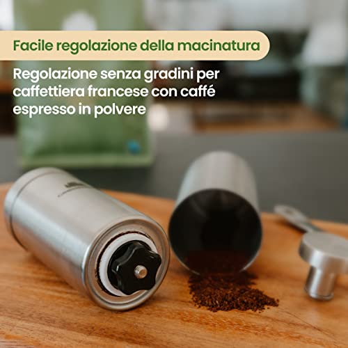 Macchina Caffè Cialde Vevok Chef Macinacaffè Manuale O20 - 20 Livelli Di Regolazione Esterna, Capacità 35 G Con Custodia Da Viaggio E Attrezzi Per La Pulizia, Macinacaffè Conico In Acciaio Inox Placcato