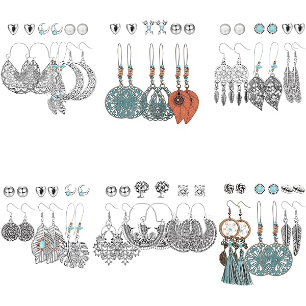 Orecchini Sposa Boho Chic OPUHOHR 18Paia Orecchini Pendenti Per Donna, Vintage Orecchini Nazionali, Orecchini Pendenti Per Regalo Dei Monili Per La Madre, Fidanzata, Sorelle, Ecc : Amazon.it: Moda Orecchini Pendenti Aliexpress ♥ Contenuto della confezione: riceverai 12 tipi di orecchini boho di diverse dimensioni. Acquista 12 paia di orecchini pendenti stile boho vintage set da appendere per vestiti donne ragazze, orecchini pendenti orientali bohémien retrò orecchini piercing all'orecchio con fiori foglia gocce d'acqua spedizione gratuita resi gratuiti su prodotti idonei Ognuno è così carino che può aggiungere più bellezza a te. Regalo ideale per compleanno, Natale, festa della mamma e festa del papà, ecc. Ottimo regalo per Natale o qualsiasi collezionista di ornamenti per festival. ♥ Stile unico: appartiene agli antichi stili vintage bohémien, sono orecchini così meravigliosi, sono pensati per essere gli orecchini più unici, con lunghi ciondoli pendenti, piccoli ciondoli e ti portano fortuna e ti rendono speciale. ♥ Materiale: questi orecchini bohémien sono realizzati in materiale ecologico, realizzati in lega, piccoli ciondoli, con piastra elettrica di alta qualità, che è sicura da indossare, leggera e facile da indossare e da togliere, dovrebbe essere una grande collezione di orecchini.