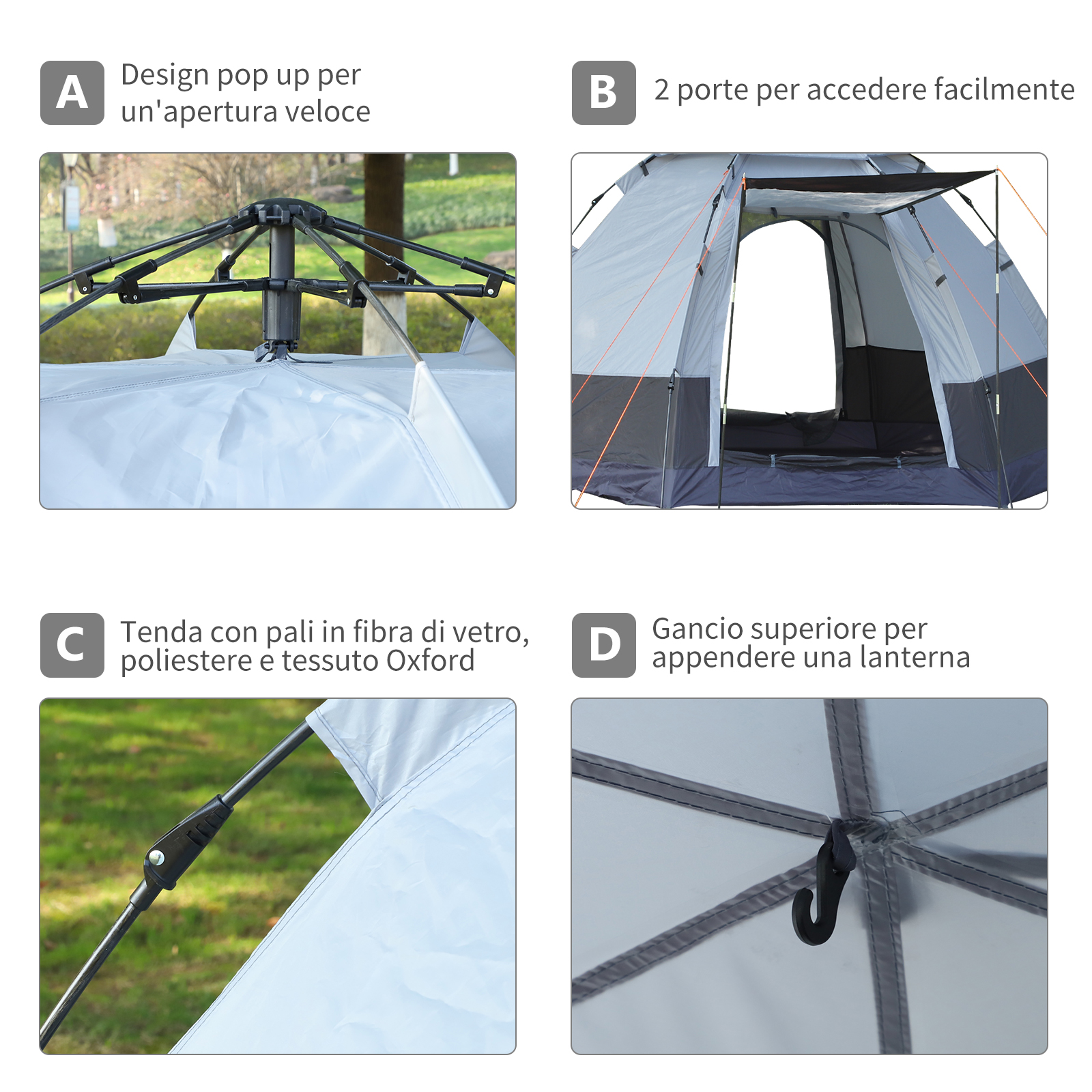 OUTSUNNY - Tenda Da Campeggio 4-5 Posti Con 4 Porte A Cerniera, Zanzariera E Gancio, 350x350x230cm, Bianca E Blu