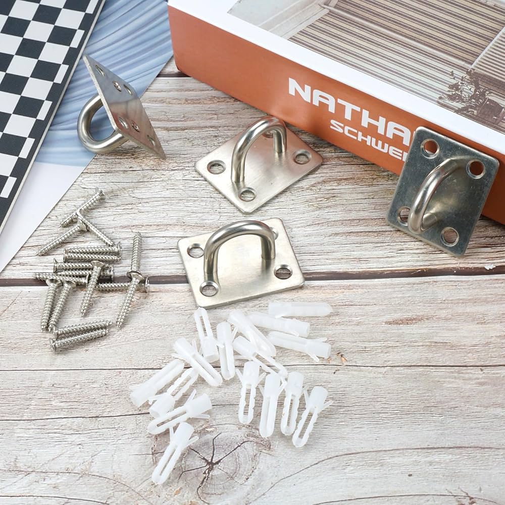 [Robustezza E Capacità Di Carico] Gancio Da Soffittosono Realizzati Con Tecnologia Di Saldatura Naturale E I Punti Di Saldatura Sono Resistenti E Non Facili Da Rompere. [Elenco Dei Pacchetti] Ogni Pacchetto Contiene 4 * Piastre Oculari In acciaio inox, 4 * Moschettone acciaio inox, 8* Viti E 8* Tappi In Gomma, Per Garantire Di Avere Tutti I Componenti Necessari Per Completare Il Progetto. Moschettone Acciaio Inox Gancio Soffitto 4 Pezzi - Ganci Da Soffitto Acciaio Inox - Occhielli In Acciaio Inox Con Viti E Tappi Gomma - Occhielli A Vite Per Appendere Oggetti, Montaggio Soffitto E Montaggio Parete Braccetti Per Tende Da Sole [Utilizzo] La Ganci Soffitto è adatta per appendere oggetti, cinghie di allenamento, accessori per ponti di barche, corde per patio, vele ombreggianti, corde e reti decorative, ecc. Può Essere Perfettamente Combinata Con Qualsiasi Accessorio Sospeso Come Corde, Anelli A Catena O Ganci A Molla. [Materiale] Le Ganci Per Amaca Sono Realizzate In Acciaio Inossidabile 304 Di Alta Qualità, Che Ha Un'eccellente Resistenza All'usura, Alla Corrosione E Alla Ruggine Ed È Adatto Per Un Uso Esterno A Lungo Termine. Che si tratti di decorazioni per la casa o di avventure all'aria aperta, queste piastre ad occhiello in acciaio inossidabile sono ideali per il fissaggio a soffitto e a parete. 4 Pezzi gancio soffitto e acciaio inox Moschettone - occhielli in acciaio inox con viti e tappi gomma - occhielli a vite per appendere oggetti, montaggio soffitto e montaggio parete (Argento)