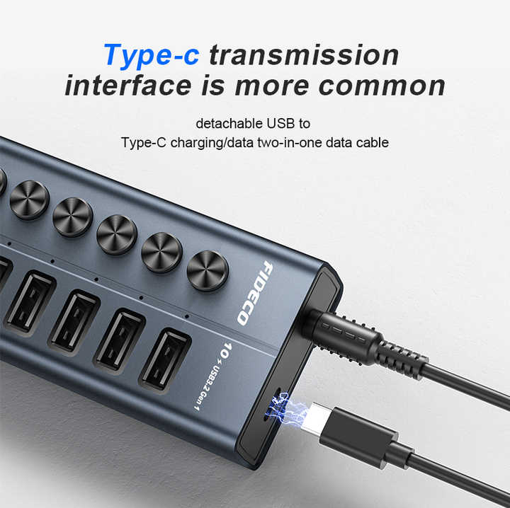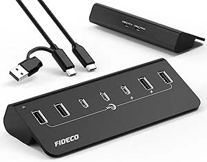 Pertanto, può assolutamente risparmiare tempo, aiutare a eliminare cavi penzolanti o spine antiestetiche e aiutarti a sbarazzarti della scrivania disordinata. L'hub USB può essere sia per scopi pratici che estetici! Super velocità di 10 Gbps: l'hub USB FIDECO è dotato di standard USB 3.2 Gen 2 con velocità massima di trasferimento dati fino a 10 Gbps, e migliorerà notevolmente la produttività e la connettività del lavoro Docking Station USB Alimentato 7 Porte On/Off Stick Splitter USB 3.0 Multisocket E Usb C Hub Porte USB A e USB C: l'hub dati USB FIDECO è dotato di 4 porte USB-A e 3 porte USB-C, quindi un solo hub USB può soddisfare le tue esigenze di collegamento di dispositivi con porta USB A o USB C. Offriamo un cavo da USB C a USB C con adattatore USB A collegato. Supporta la ricarica BC1.2: una porta USB A e una porta USB C possono supportare la ricarica BC1.2 e il nostro hub USB può supportare il trasferimento dati e la ricarica dei dispositivi contemporaneamente. Basta collegarlo e giocare, senza bisogno di driver. La parte inferiore dell'hub dati è dotata di cuscinetto in gomma antiscivolo, che può una maggiore stabilità senza graffiare la scrivania.