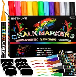 Così come lavagne bianche e nere, vetro, cristalli, metalli, specchi, ceramica, ecc. Dai un tocco creativo al tuo menu, vetrina o lettering! RAYLU PAPER Pennarelli a gesso liquido per lavagna , cancellabili e punta reversibile, pennarelli per lavagna nera a base d'acqua, ideali per lavagne, vetri, ceramica Facile da cancellare: pulire a secco facilmente dopo aver asciugato l'inchiostro con un panno passandolo su qualsiasi superficie non porosa su cui hai dipinto. Estrarre la punta del pennarello e scegliere tra una finitura arrotondata con la punta smussata o una più dritta e precisa con la punta conica. Rimuovere il coperchio e premere la punta più volte fino a quando non si riempie di inchiostro. ✅ Facile da usare: agitare energicamente il pennarello con il coperchio messo e verso il basso. RAYLU PAPER Pennarelli a gesso liquido per lavagna, cancellabili e punta reversibile, pennarelli per lavagna nera a base d'acqua, ideali per lavagne, vetri, ceramica Ogni scatola presenta un repertorio colorato di pennarelli con una punta di 6 mm di spessore che offre una finitura migliore rispetto al gesso tradizionale. ✅ Pennarelli a gesso liquido: i nostri pennarelli sono a base d'acqua, sicuri e atossici. Pennarelli Per Lavagna In Gesso OfficeTree 8x Pennarelli Gesso Liquido Cancellabil - 8 Colori - Pennarelli Per Vetro Pennarelli Per Ceramica
