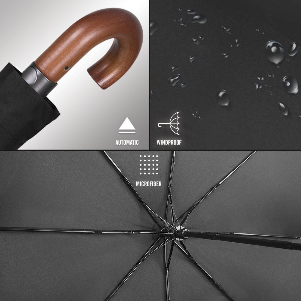 Ombrello Da Pioggia Con Manico Di Legno 8 Stecche In Fibra