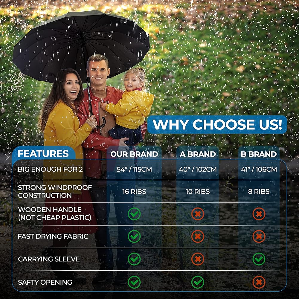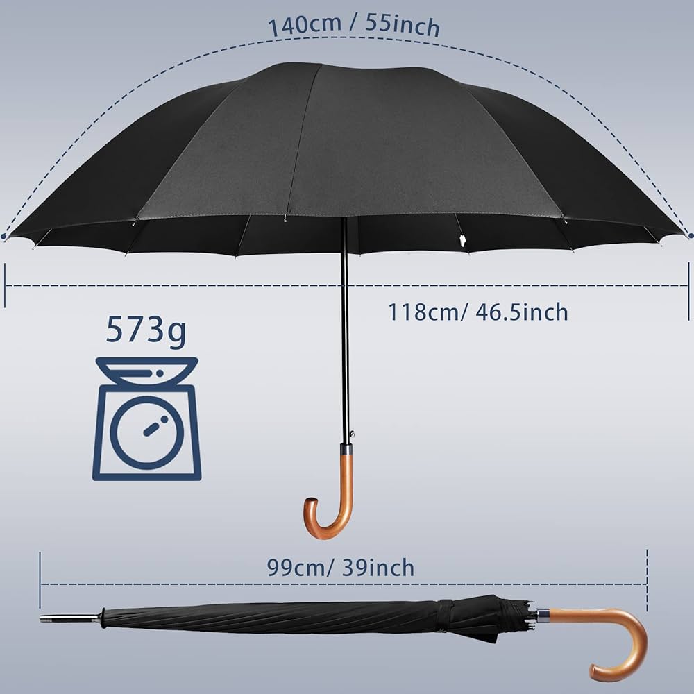 ZOMAKE Ombrello Grande Antivento 12 Costole,Ombrello Classico Uomo Donna Con Manico In Legno,120 cm Ombrelli Pioggia Automatico Robusto,Ombrello Golf XXL con Decorazione ad Anello Metallo(Nero Dotato Di Copertura Per Ombrello, Facile Da Trasportare E Da Appendere Ombrelli di Qualità Durevole: I Nostri Ombrelli Da Golf Grandi Dimensioni Sono Realizzati Con Una Robusta Barra Centrale In Metallo E Con Tessuti Hi-Tech 210T Impermeabili, Resistenti Ai Crolli E Leggeri, Con Una Parte Superiore Rinforzata Per Resistere Efficacemente Alle Intemperie Ombrello Pioggia ZOMAKE Ombrello Grande Antivento 12 Costole,Ombrello Classico Ombrelli Antivento Robusti Design Esclusivo del Marchio: Il nostro manico d'ombrello classico Uomo in legno a forma di J è dotato di un anello di rifinitura in metallo per un lusso di alto livello e una grande estetica Telaio A 12 Ossi Super A Prova Di Vento: L'ombrello grande xxl o l è Realizzato Con Montanti Rinforzati In Fibra Di Vetro, In Grado Di Resistere A Forti Raffiche Di Vento Da 30 A 50 Km/S.