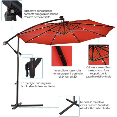 Si prega di non lasciare l’ombrellone esposto alla pioggia. Il cinturino di fissaggio incluso aiuta a mantenere l’ombrellone ben chiuso quando non in uso. Tavolo Da Esterno - 270 Cm Grigio, Ombrello Hawaiano, Ombrellone Ombrellone Da Giardino L’ombrellone da 270 cm è dotato di un innovativo meccanismo di inclinazione che consente di regolare l’angolazione dell’ombra in base alla posizione del sole. Il tettuccio ventilato favorisce il passaggio dell’aria, creando un’esperienza più fresca e piacevole L’ombrellone da 270 cm è dotato di un innovativo meccanismo di inclinazione che consente di regolare l’angolazione dell’ombra in base alla posizione del sole. Questo meccanismo consente un’inclinazione agevole di 35°, assicurando un’ombra ottimale per tutto il giorno senza dover spostare l’ombrellone. 【Facile da Montare e Riporre】L’ombrellone parasole da spiaggia è dotato di un palo in due sezioni con struttura avvitabile, che ne facilita l’assemblaggio. Caratteristiche: Tessuto in poliestere con rivestimento PA per protezione solare Sistema di inclinazione a pulsante per regolare l’angolazione dell’ombra Manovella per aprire e chiudere facilmente l’ombrellone Tettuccio ventilato per maggiore freschezza e stabilità Palo in metallo da 38 mm con rivestimento a polvere per maggiore durata 8 stecche robuste per una struttura affidabile Perno di sicurezza per evitare chiusure improvvise Pulsante di rilascio per collegare rapidamente i due pali Specifiche prodotto: Colore: Beige/Marrone/Grigio/Bordeaux Materiale: Metallo, Poliestere Dimensioni Complessive: 270 x 270 x 240 cm (L x P x A) Altezza del Tettuccio: 190 cm Peso Netto: 5,5 kg La confezione include: 1 x Ombrellone da Giardino 1 x Istruzioni 【Manovella Manuale】Aprire e chiudere il grande ombrellone da mercato è estremamente semplice grazie alla manovella. Bastano pochi giri per aprire o richiudere l’ombrellone. Descrizione: L’ombrellone da giardino è progettato con un tessuto di poliestere rivestito in PA che non solo offre un’eccellente protezione solare, ma è anche resistente all’usura e allo scolorimento, garantendo una lunga durata. NOTA: Il supporto per ombrellone non è incluso nel prezzo. Inoltre, il perno di sicurezza evita chiusure accidentali, offrendoti tranquillità mentre ti rilassi all’ombra. Con 8 stecche robuste e un palo in metallo spesso, l’ombrellone è stabile e resistente.