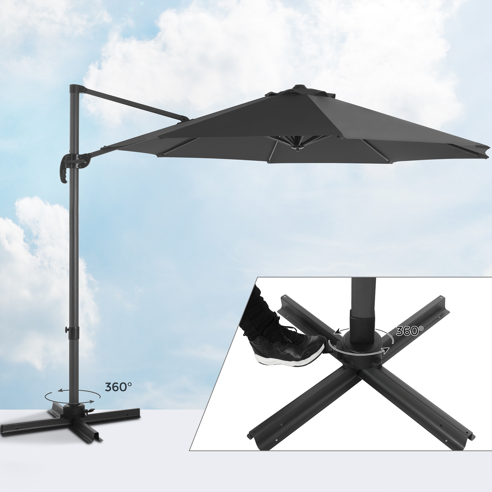 Ombrellone Patio Solare LED A Sbalzo Rotazione A 360 Gradi Alluminio Marrone Goplus Ombrellone A Sbalzo Con Luci Solari Ombrellone Giardino Con Luce Solare Led