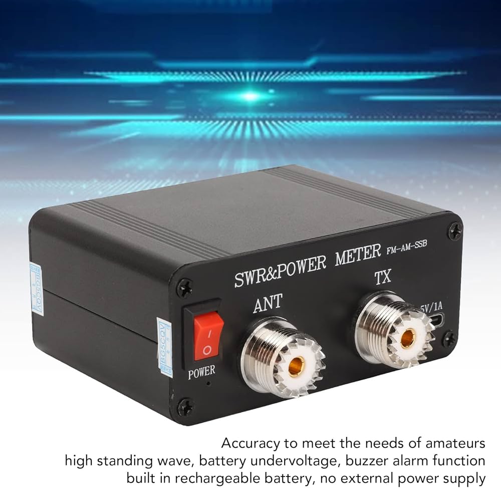 Misuratore Di Onde Stazionarie Display Digitale 1 8‑50 MHz FM GAMMA DI POTENZA: 0,5 W‑120 W (fino a 200 W, inferiore a 120 W test a lungo termine consigliato FM, AM, modalità CW, modalità SSB opzionale), display one touch, funzione di cambio modalità. ALTA PRECISIONE: la precisione del misuratore di onde stazionarie digitale soddisfa le esigenze dei dilettanti, l'onda stazionaria elevata, la funzione di allarme del cicalino di sottotensione della batteria. NESSUN ALIMENTATORE: misuratore di onde stazionarie digitale fai-da-te, piccolo e portatile, batteria ricaricabile integrata, nessun alimentatore esterno. DISPLAY DIGITALE: SWR meter può visualizzare direttamente potenza in avanti, potenza riflessa, potenza dell'antenna, efficienza dell'antenna, onda stazionaria, tensione della batteria. Sottotensione della batteria, il cicalino continuerà a segnalare e la spia gialla si accenderà.