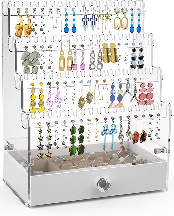 Ogni scaffale ha 140 fori, che consentono di riporre circa 70 paia di orecchini. La sua calda tonalità oro rosa aggiunge lusso, mentre il materiale resistente e facile da pulire eleva il display degli orecchini, facendo risaltare i tuoi gioielli. NiHome Portagioie da parete in acrilico iridescente, ideale per risparmiare spazio, grande capacità, con 132 fori per orecchini, 150 slot e 23 ganci per collane, semplice installazione senza trapano Porta Orecchini Manomano Seitop Organizer Per Trucchi 8 Scomparti In Acrilico Per Cosmetici Porta Orecchini In Offerta L'organizer per orecchini in acrilico fornisce un display chiaro, mantenendo la tua casa ordinata e fornendo ampio spazio per riporre gli orecchini. Se il prodotto risulta danneggiato al momento della consegna, puoi richiedere un reso. Capacità del prodotto: la nostra confezione include 1 porta orecchini completo a forma di arcobaleno e 2 piastre di base bianche a forma di nuvola. È anche conveniente rimuovere gli orecchini dal supporto e appenderli, fornendo una piacevole esperienza utente. Colore squisito: realizzato in acrilico con finitura a specchio in oro rosa, questo organizer per orecchini brilla brillantemente, riflettendo la luce e aggiungendo eleganza a qualsiasi spazio.
