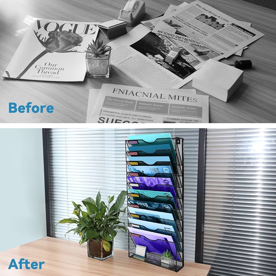 Perfetto tenere in ordine ciò che serve.... 【Design Semplice Ma Funzionale】Prodotto con ottimo rapporto qualità/prezzo. È possibile scegliere liberamente il metodo di installazione HIHOBDAY 6 Livelli A4 Organizer Scrivania Portadocumenti Ufficio, Portariviste Da Parete Metalloa, File Organizer, Porta-Riviste Depliant Da Parete Rete Metallica Per Scuola Domestica Portaposta A Muro HIHOBDAY 9 Livelli A4 Organizer Scrivania Portadocumenti Ufficio Organizer Da Parete Portariviste da parete metalloa presenta utile numerosi vani e lo strato inferiore può contenere molte piccole cose(penne, matita, penna, graffette, gomme per cancellare, righelli, forbici, colla stick ecc.) Strumento davvero comodo e spazioso consente di gestire meglio la scrivania, perfetto per amanti dell'ordine 【Per Avere Tutto In Ordine】Ottimo organizer da scrivania, per avere tutto in ordine. 【Molto Capiente】Questo organizer da scrivania è molto capiente. Ottimo organizer da scrivania, per avere tutto in ordine.
